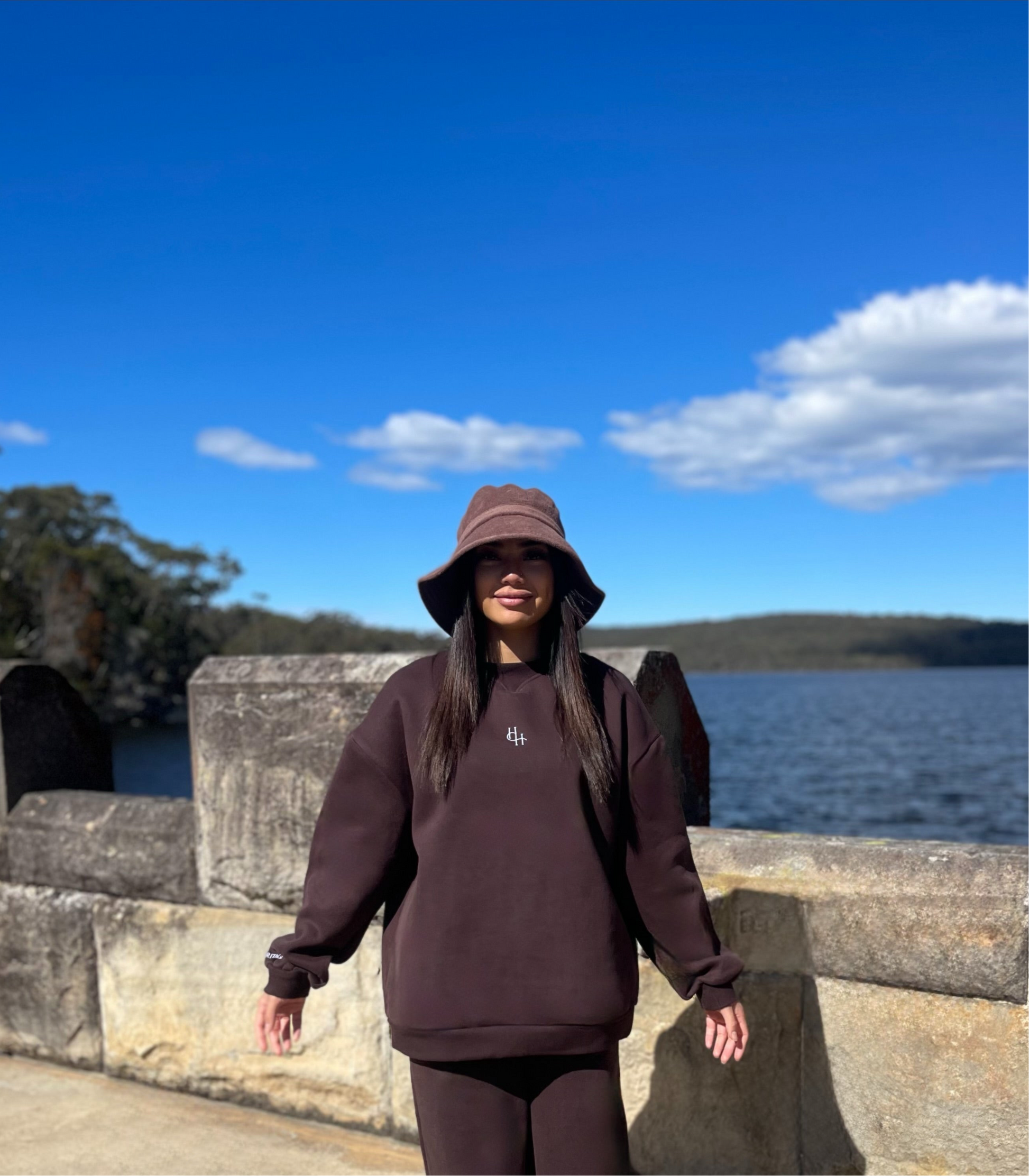 A soft-touch crewneck in a Mocha Brown shade, offering everyday comfort with a refined, oversized silhouette. Crafted from a premium cotton blend with a warm fleece lining for added softness and durability.